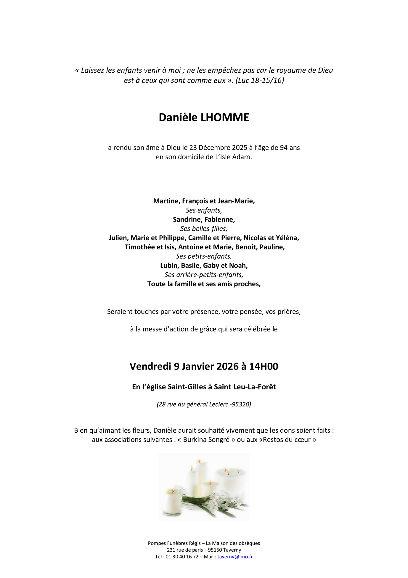 Décédée à L'Isle-Adam (95290, France) le mardi 23 décembre 2025 à l'âge de 94 ans