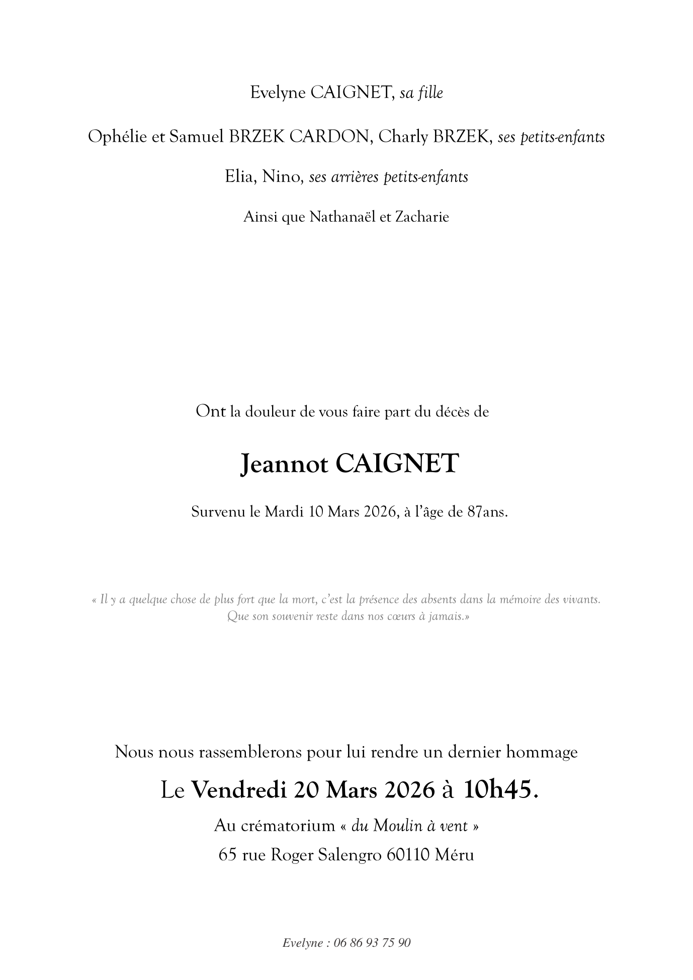 Décédé à Beaumont-sur-Oise (95260, France) le mardi 10 mars 2026 à l'âge de 87 ans