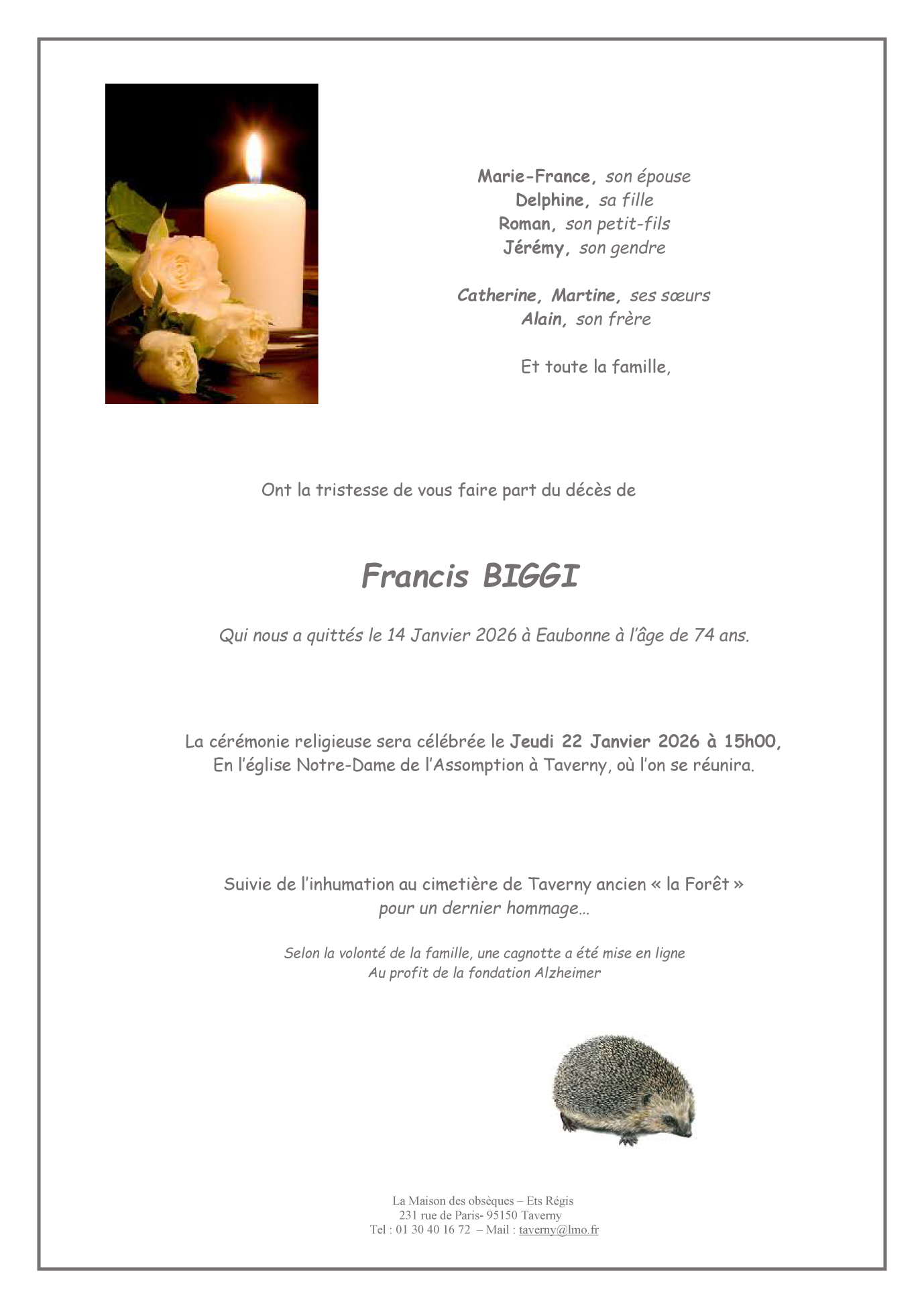 Décédé à Eaubonne (95600, France) le mercredi 14 janvier 2026 à l'âge de 74 ans