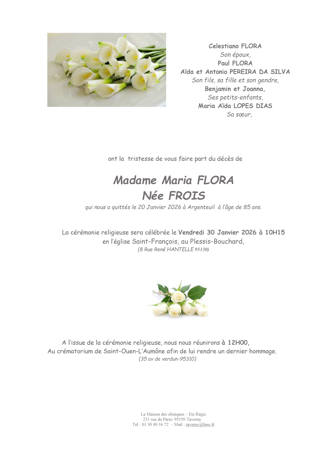 Madame Maria FLORA née FROIS